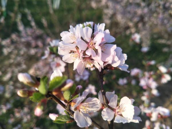 桃花啊桃花 那一樹的嫣紅 像是春說的一句話 朵朵露凝的嬌艷 是一些玲瓏的字眼 一瓣瓣的光致 又是些柔的勻的吐息含著笑 在有意無意間 生姿的顧盼 看那一顫動在微風(fēng)里 她又留下淡淡的 在三月的薄唇邊 一瞥一瞥一瞥多情的痕跡 喲看那一顫動在微風(fēng)里 她又留下淡淡的 在三月的薄唇邊一瞥一瞥一瞥 多情的顧盼