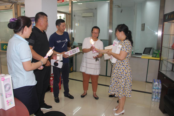市分公司副總經(jīng)理兼工會(huì)主席魏亞峰率工會(huì)副主席李洪彬等先后慰問了愛民郵政支局、橋北郵政支局和愛民投遞部,親手把精美實(shí)用的小風(fēng)扇發(fā)放到職工手中,并當(dāng)場(chǎng)給職工們演示小風(fēng)扇的功能和如何使用,并詢問了解職工的工作生活情況,悉心囑咐職工們要注意防暑,勞逸結(jié)合,讓所有的職工們深受感動(dòng)。收到慰問品的職工們都特別高興,一致稱贊市分公司工會(huì)發(fā)放的風(fēng)扇即實(shí)用又美觀,還能當(dāng)個(gè)小臺(tái)燈,員工們拿著風(fēng)扇個(gè)個(gè)愛不釋手,每個(gè)員工的臉上都洋溢著甜甜的笑容。市分公司蔡寶偉副總經(jīng)理率人力資源主任鞏福興、副主任郭鐳等先后慰問了陽(yáng)明郵政支局、7個(gè)投遞部、信息技術(shù)中心和機(jī)要通信分局,為他們送去了精美實(shí)用小風(fēng)扇和礦泉水,為職工們吹去了汗水,暖了人心!蔡寶偉副總經(jīng)理每到一處都詳細(xì)詢問了網(wǎng)點(diǎn)收入和經(jīng)營(yíng)情況,對(duì)陽(yáng)明中心營(yíng)業(yè)所現(xiàn)場(chǎng)擺放銷售的分銷產(chǎn)品的銷售情況和價(jià)格情況進(jìn)行了了解,對(duì)柜員收寄包裹嚴(yán)格驗(yàn)視給予了充分肯定,對(duì)郵務(wù)網(wǎng)點(diǎn)進(jìn)度排名第一給予高度評(píng)價(jià)。耿洪民副總經(jīng)理率市場(chǎng)營(yíng)銷部主任孫振波等先后慰問了西安區(qū)分公司和東安區(qū)分公司網(wǎng)點(diǎn),為網(wǎng)點(diǎn)職工們送去了企業(yè)的關(guān)懷、精美實(shí)用小風(fēng)扇和礦泉水。耿洪民副總經(jīng)理每到一處網(wǎng)點(diǎn)都仔細(xì)詢問網(wǎng)點(diǎn)業(yè)務(wù)發(fā)展情況,業(yè)務(wù)發(fā)展中的阻力以及職工在生產(chǎn)生活中遇到的困難等,并囑咐大家在高溫天氣下工作一定注意身體,多喝綠豆水等飲品清涼止渴,在確保安全生產(chǎn)的前提下,保證各項(xiàng)業(yè)務(wù)正常有序發(fā)展。