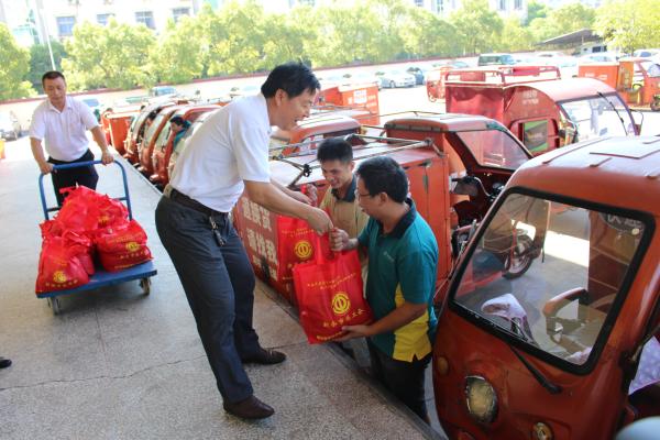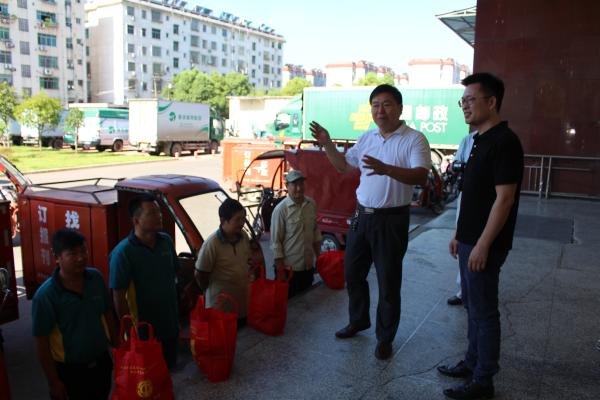 7月18日上午,新余市總工會(huì)常務(wù)副主席賴新云一行來(lái)到市郵政公司,在市分公司副總經(jīng)理秦立明的陪同下,走訪慰問(wèn)了那些在高溫酷暑天氣下穿梭于大街小巷的投遞員們,為他們送去了綠豆、冰糖、花露水、人丹、風(fēng)油精等防暑降溫物品,叮囑他們要加強(qiáng)安全生產(chǎn),切實(shí)做好防暑降溫工作。