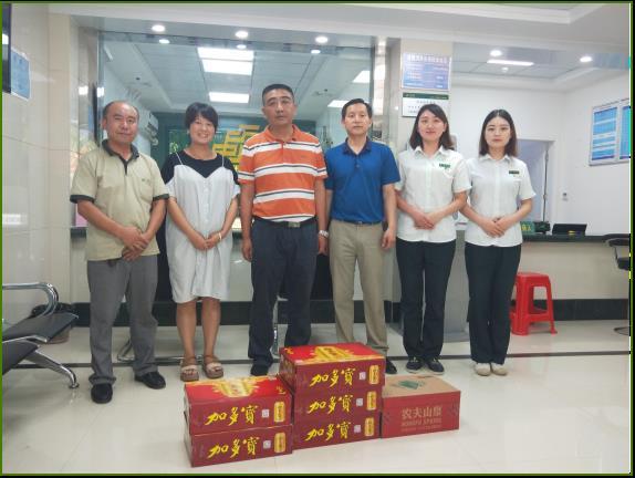 為切實(shí)做好夏季生產(chǎn)防暑降溫工作,保障生產(chǎn)一線職工的健康權(quán)益,7月31日至8月1日,神農(nóng)架林區(qū)分公司總經(jīng)理何翔,副總經(jīng)理、工會(huì)主席潘經(jīng)輝深入到中心街營(yíng)業(yè)所、沿河路營(yíng)業(yè)所、陽(yáng)日、紅坪、木魚(yú)等支局網(wǎng)點(diǎn)開(kāi)展“夏送清涼”慰問(wèn)活動(dòng),給炎炎夏日?qǐng)?jiān)守崗位的職工送去涼茶、礦泉水等消暑物品和企業(yè)對(duì)一線職工的關(guān)愛(ài)。