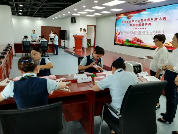 為檢驗網(wǎng)點“技能大練兵”以及區(qū)縣公司初賽組織成效,全力備戰(zhàn)全市網(wǎng)點從業(yè)人員職業(yè)技能大賽決賽,近日,池州市郵政分公司、工會利用下午、晚上時間分別組織全市“擇優(yōu)推薦組”、“隨機(jī)抽簽組”兩個組別,共八支代表隊、50余名隊員齊聚于巿分公司多功能廳內(nèi)參加通關(guān)比賽,一展郵政健兒風(fēng)采。通關(guān)賽以電視電話會議的形式同步轉(zhuǎn)播至縣分公司,令不能親臨現(xiàn)場的伙伴們共同感受精彩激烈的比賽氛圍,大家集體以特殊方式提前歡度中秋佳節(jié)。