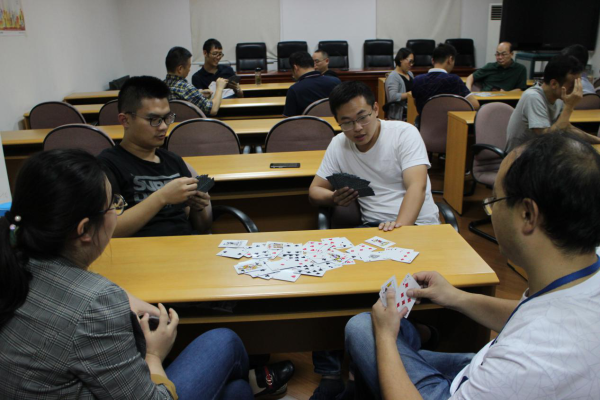 為活躍氣氛,歡慶佳節(jié),國(guó)慶節(jié)前省信息技術(shù)局工會(huì)組織開(kāi)展撲克牌“摜蛋”比賽。競(jìng)技撲克比賽是一項(xiàng)不分性別、老少皆宜的活動(dòng),但卻深深反應(yīng)出團(tuán)結(jié)協(xié)作、默契程度,也深受信息局職工的歡迎。在本次比賽進(jìn)程中現(xiàn)場(chǎng)氣氛十分活躍,選手們密切配合、沉著應(yīng)戰(zhàn),對(duì)戰(zhàn)雙方比牌技,比智慧,賽成績(jī),賽友誼。8組選手展開(kāi)激烈角逐,比分你追我趕,比賽膠著有趣,打出了不少精彩對(duì)局,大家切磋牌技的同時(shí),加強(qiáng)了交流,增進(jìn)了友誼。