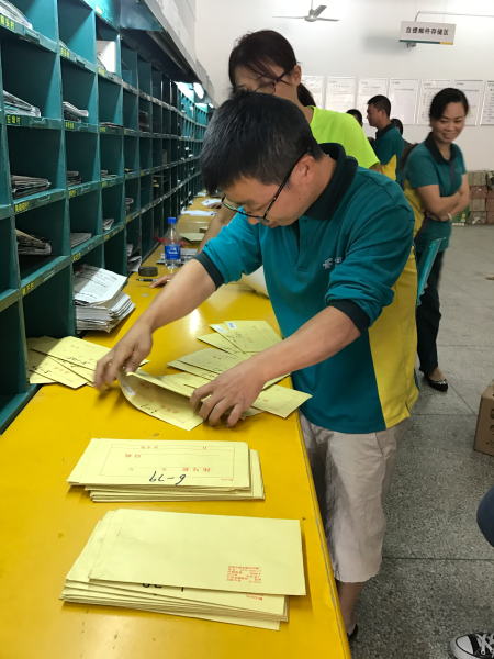 此次比武活動共分為數(shù)報(占比20%)、分報(占比20%)、排信(占比20%)、加蓋投遞日戳(占比20%)、服務(wù)禮儀(占比20%)五個環(huán)節(jié)。選手需要以嫻熟的技巧,在規(guī)定時間內(nèi)進(jìn)行規(guī)范操作,這是對選手綜合業(yè)務(wù)能力水平的一次現(xiàn)場檢驗。針對每個環(huán)節(jié)的不同要求,比賽設(shè)置了扣分項和加分項。比賽評委現(xiàn)場嚴(yán)格按評分標(biāo)準(zhǔn)對每位參賽者進(jìn)行了打分。