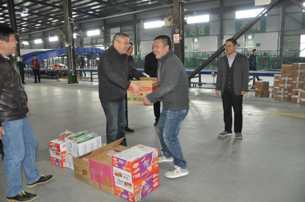 11月13日上午,在“雙十一”旺季生產(chǎn)之際,為給一線員工加油鼓勁,宿州市郵政工會積極謀劃,提前做好后勤保障工作。宿州分公司總經(jīng)理李中勝,市寄遞事業(yè)部常務(wù)副總經(jīng)理劉斌到市郵件處理中心看望慰問在生產(chǎn)一線的職工。工會、綜合辦公室為助力“雙十一”旺季生產(chǎn),提前謀劃,精心安排,為一線職工準(zhǔn)備了方便面、牛奶、火腿腸、蘋果等食品。