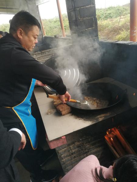 在參觀完羅坊會(huì)議紀(jì)念館后,全體人員帶著網(wǎng)點(diǎn)自購(gòu)食材乘車來(lái)到八0農(nóng)莊開(kāi)展秋游活動(dòng)。區(qū)分公司首先將15個(gè)金融網(wǎng)點(diǎn)抽簽分為4個(gè)小組,然后將現(xiàn)場(chǎng)租賃的4個(gè)灶臺(tái)分配給各小組使用。每個(gè)小組在小組長(zhǎng)的帶領(lǐng)下,根據(jù)組員特長(zhǎng)進(jìn)行分工協(xié)作,各司其職,洗菜、切菜、生火、掌勺、打掃戰(zhàn)場(chǎng)等現(xiàn)場(chǎng)井然有序。不一會(huì)兒,紅燒鳊魚(yú)、小炒牛肉、開(kāi)心花甲等菜肴都擺在大家面前,無(wú)論形狀、還是色澤,無(wú)不讓人饞涎欲滴,有的小組成員迫不及待的想嘗個(gè)鮮。大家都沉浸在勞動(dòng)的快樂(lè)和美味中,場(chǎng)面熱鬧、和諧、溫馨。