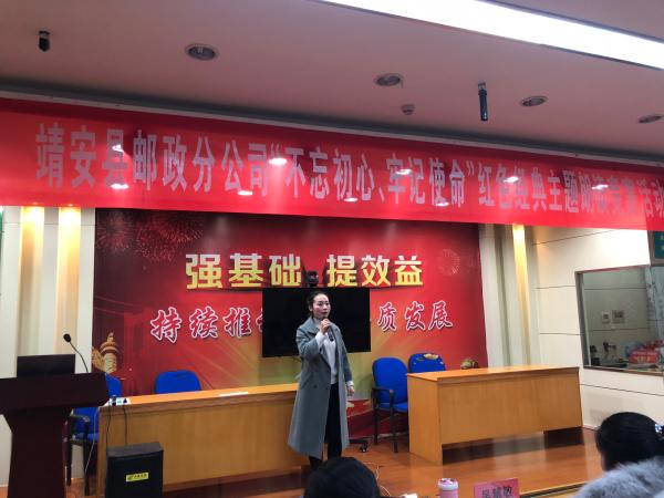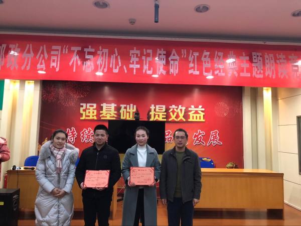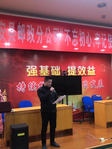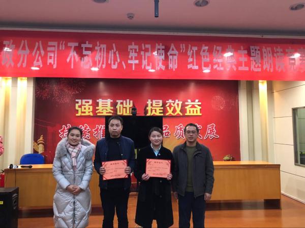 為深入推進黨的十九大精神的學(xué)習(xí)貫徹,12月10日晚,靖安縣郵政工會開展了“不忘初心、牢記使命”紅色經(jīng)典主題朗讀競賽活動。來自柜員、營業(yè)員、會計,財富中心經(jīng)理等不同崗位的10位參賽選手,用朗誦的形式歌頌黨的十九大、歌頌革命烈士、歌頌企業(yè)的勞模先進事跡??h分公司總經(jīng)理鄒運芳、副總經(jīng)理吳慧敏、工會組織委員左紫霞、渠道平臺中心經(jīng)理陳開銀、市場營銷部副經(jīng)理黃亞婷擔(dān)任評委,工會干事賈穎濤擔(dān)任主持人。