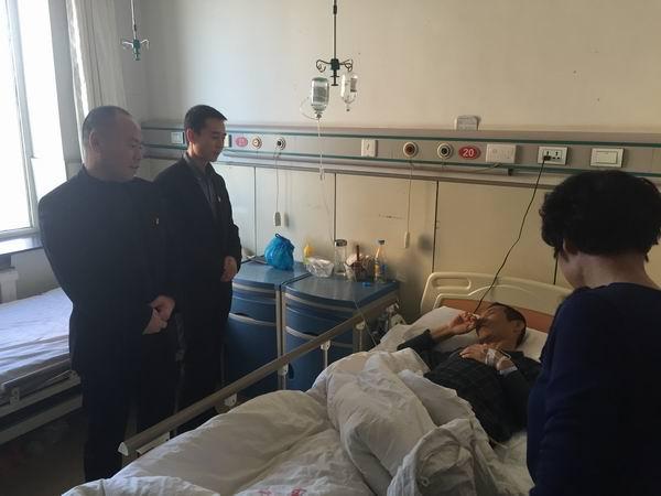 12月18日,乾安縣分公司副總經(jīng)理?xiàng)罟馀c工會(huì)主席鄭丙亮前往乾安縣醫(yī)院看望慰問(wèn)重病職工曲曉強(qiáng)同志,把愛(ài)心捐款送達(dá)他手中,為他送去企業(yè)的關(guān)懷和溫暖。