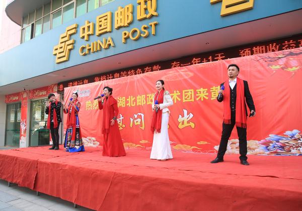 省郵政藝術團送溫暖慰問小分隊為現(xiàn)場職工和郵政客戶帶來精彩的慰問演出,獻唱了《黃梅飄香》、《這里是湖北》等經典曲目,并邀請現(xiàn)場觀眾共同演唱戲曲《夫妻雙雙把家還》。演出現(xiàn)場和諧喜慶,氣氛活躍。省分公司和基層一線員工的心因傳統(tǒng)文化的魅力緊緊連在一起,也彰顯了湖北郵政的強大正能量。活動現(xiàn)場還穿插了郵政業(yè)務知識有獎答題環(huán)節(jié)?,F(xiàn)場觀眾手持宣傳折頁踴躍上臺搶答,將演出現(xiàn)場氣氛不斷推向高潮。
