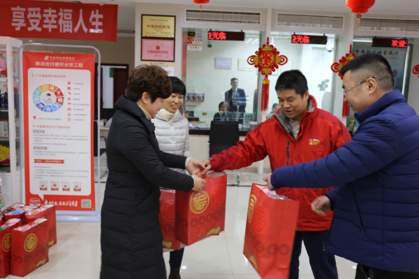 高行長(zhǎng)為網(wǎng)點(diǎn)每位員工送上了新年禮包,為基層送去了節(jié)日的問候和美好祝愿,并對(duì)大家一年來的辛勤工作表示感謝,勉勵(lì)大家發(fā)揚(yáng)作風(fēng),再接再厲!