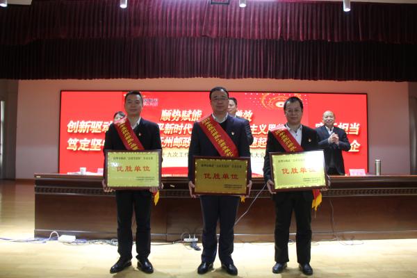 會議首先對2018年度撫州郵政“品質(zhì)發(fā)展杯”勞動競賽優(yōu)勝單位、“平安郵政·安全生產(chǎn)”勞動競賽獎、“爭先進(jìn)位”優(yōu)勝單位進(jìn)行了表彰。芮義標(biāo)副總經(jīng)理宣讀表彰決定,市分公司領(lǐng)導(dǎo)為獲獎單位頒了獎。