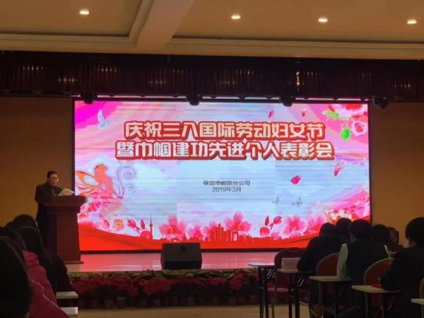 3月7日,為慶祝第109個(gè)三八國(guó)際婦女節(jié),保定市分公司召開(kāi)“巾幗建功”先進(jìn)個(gè)人表彰大會(huì)暨“快樂(lè)工作 幸福生活”關(guān)愛(ài)女員工主題講座活動(dòng),對(duì)“巾幗建功”先進(jìn)女職工進(jìn)行表彰,市分公司領(lǐng)導(dǎo)以及受表彰的先進(jìn)個(gè)人、女職工代表共計(jì)120余人參加了活動(dòng)。