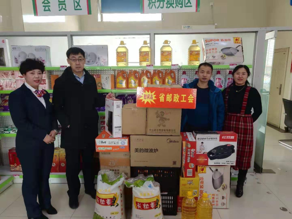 齊市郵政工會(huì)積極行動(dòng),大力宣傳獲獎(jiǎng)網(wǎng)點(diǎn)取得的成績(jī),要求各基層工會(huì)必須專(zhuān)款專(zhuān)用為獲獎(jiǎng)網(wǎng)點(diǎn)購(gòu)買(mǎi)經(jīng)濟(jì)實(shí)用的食品、物品?;鶎痈飨嚓P(guān)單位領(lǐng)導(dǎo)高度重視,帶領(lǐng)導(dǎo)相關(guān)人員組成慰問(wèn)小組,前往網(wǎng)點(diǎn)開(kāi)展慰問(wèn)活動(dòng),為網(wǎng)點(diǎn)送去了豆油、大米、水果等食品和微波爐等物品。慰問(wèn)組在網(wǎng)點(diǎn)看望了忙碌的柜員,向職工辛勤的付出表示問(wèn)候和謝意。慰問(wèn)組通過(guò)和網(wǎng)點(diǎn)支局長(zhǎng)、理財(cái)經(jīng)理交談,了解網(wǎng)點(diǎn)產(chǎn)品和激勵(lì)政策,對(duì)前階段工作取得的成績(jī)給予肯定,并向她們表示祝賀,同時(shí)也轉(zhuǎn)達(dá)了省分公司、省郵政工會(huì)領(lǐng)導(dǎo)對(duì)一線員工的關(guān)愛(ài)。