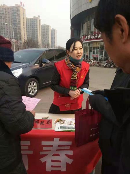 河間市郵政分公司積極響應團市委、宣傳部號召,專門組織志愿服務隊參加志愿服務活動。幾年來,職工志愿服務隊努力實踐“愛國守法,明禮誠信,團結(jié)友善,勤儉自強,敬業(yè)奉獻”的公民基本道德規(guī)范,傳承、弘揚、踐行雷鋒精神,為促進河間精神文明建設和良好道德風尚的形成,起到了積極的推動作用。志愿服務隊開展了形式多樣的“學雷鋒”職工志愿服務,為群眾提供防范金融詐騙知識宣傳、清理公園垃圾、金融知識普及等志愿服務項目。