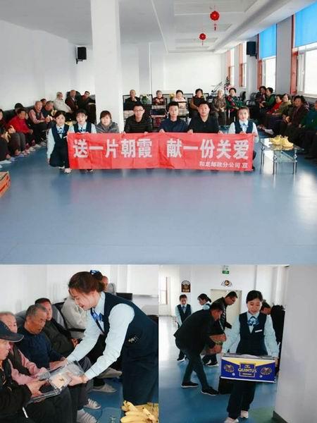 為進(jìn)一步弘揚(yáng)尊老、愛老、敬老、助老的中華民族傳統(tǒng)美德,倡導(dǎo)“奉獻(xiàn)、友愛、互助、進(jìn)步”的志愿精神,4月26日,和龍市分公司組織了12名郵政青年志愿者,來到和龍市榮光敬老院開展“送一份朝霞,獻(xiàn)一份關(guān)愛”主題活動。