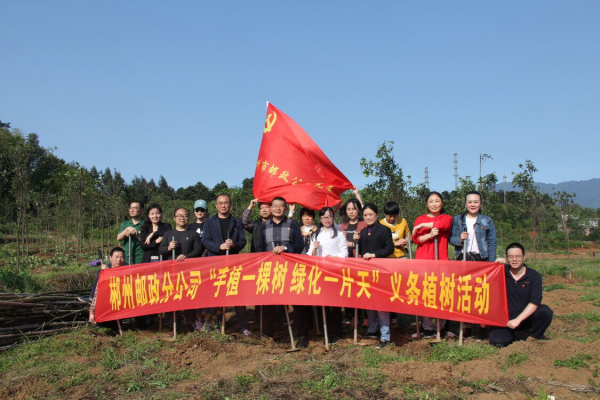 春回大地,萬物復(fù)蘇,郴州市分公司為落實(shí)集團(tuán)公司綠色郵政建設(shè)行動,為營造系統(tǒng)綠色環(huán)保氛圍也為倡導(dǎo)郵政員工生態(tài)文明理念。2019年4月17日下午,工會組織機(jī)關(guān)部分員工進(jìn)行植樹活動,積極響應(yīng)省公司“手植一棵樹 綠化一片天”的活動號召,市分公司副總經(jīng)理李軍、副總經(jīng)理周建湘親臨現(xiàn)場。簡要集合并進(jìn)行安全事項講解之后,植樹活動有序進(jìn)行,大家分工明確、默契配合,揮舞鋤頭翻新土,扶植新苗列成行,完成植樹任務(wù)200株。一片新綠賦予大地生命,分公司員工親近自然、保護(hù)環(huán)境,完美詮釋了保護(hù)生態(tài)、和諧共存的美好理念。(湖南省郵政工會)