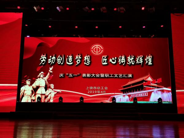 本次大會表彰了一批上饒市2019年五一勞動獎狀、五一勞動獎?wù)隆⒐と讼蠕h號、第三屆“最美職工”等一批先進單位和個人,現(xiàn)場播放了一批全國、全省五一勞動獎?wù)芦@得者代表的先進事跡。同時,穿插了職工文藝匯演。