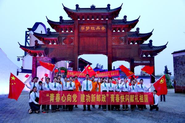 為紀(jì)念建團(tuán)97周年、五四運(yùn)動(dòng)100周年,繼承和弘揚(yáng)“愛國(guó)、進(jìn)步、民主、科學(xué)”的五四愛國(guó)精神,5月4日,撫州市分公司工會(huì)聯(lián)合團(tuán)委在『尋夢(mèng)牡丹亭』牌樓前,開展了以“青春心向黨 建功新郵政”為主題的快閃活動(dòng)。