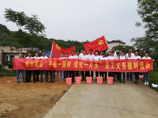 為認(rèn)真落實(shí)集團(tuán)公司“手植一顆樹,綠化一片天”郵政員工義務(wù)植樹活動(dòng)的工作要求,培養(yǎng)廣大郵政職工生態(tài)文明理念,推進(jìn)生態(tài)文明建設(shè),株洲郵政分公司于5月16日組織各單位部門工會(huì)主席和工會(huì)小組長前往郵政扶貧點(diǎn)----醴陵市明月鎮(zhèn)江邊鋪村進(jìn)行了義務(wù)植樹活動(dòng)。 早上8:00., 在分公司工會(huì)主席周時(shí)興的帶領(lǐng)下,參加義務(wù)植樹活動(dòng)的郵政職工早早在院內(nèi)集合,集體乘車前往植樹地點(diǎn)。到達(dá)江邊鋪村后,全體郵政干部職工很快就投入了植樹勞動(dòng),周時(shí)興主席帶頭植下了第一顆最大的桂花樹。植樹現(xiàn)場熱鬧非凡,大家分工協(xié)作,有的挖坑,有的澆水,有的扶樹苗,栽的認(rèn)真,干的賣力,整個(gè)植樹活動(dòng)現(xiàn)場一片熱火朝天的勞動(dòng)景象。經(jīng)過一上午的努力,100顆桂花樹苗栽植完成。微風(fēng)中搖動(dòng)的樹苗,它是汗水的凝結(jié),希望的寄托,未來的象征。 江邊鋪村村支部書記主動(dòng)帶領(lǐng)部分村民在現(xiàn)場指導(dǎo)、協(xié)助植樹,對株洲郵政干部職工來該村義務(wù)植樹表示衷心感謝并給予了高度贊揚(yáng)。圖為株洲郵政分公司義務(wù)植樹現(xiàn)場。(湖南省郵政工會(huì))