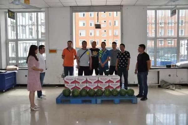 大安市分公司領(lǐng)導(dǎo)為寄遞事業(yè)部員工送去了西瓜、礦泉水等解暑用品,并親自切開西瓜遞到一線員工的手中。員工們紛紛表示西瓜吃在嘴里,甜在心里,并一致表示不管天氣有多么炎熱,一定會堅守在工作崗位上,保證完成工作任務(wù)。