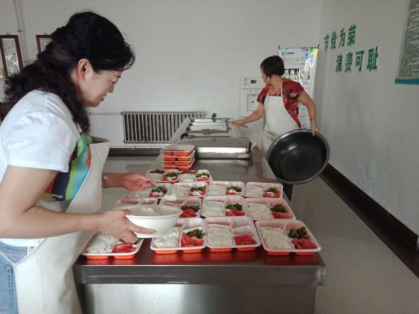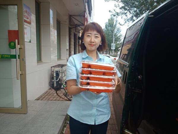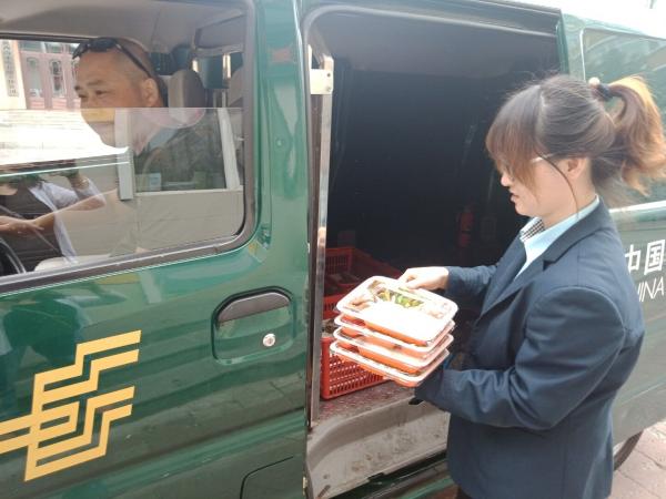 每天中午11:00時,一輛郵政面包車準(zhǔn)時從郵政大院出發(fā),駛向各個郵政網(wǎng)點,用一個小時的時間,為市區(qū)郵政十二個網(wǎng)點員工送去盒裝飯菜。網(wǎng)點的同事一聽汽車?yán)嚷暎蜁蜷_安排人小心打開門禁,高興地出來迎接熱騰騰的飯菜。為了防止網(wǎng)點員工不夠吃,每個網(wǎng)點預(yù)訂兩份以上的飯就額外送兩盒飯菜,讓大家吃得飽飽的。
