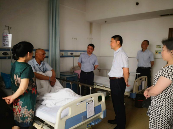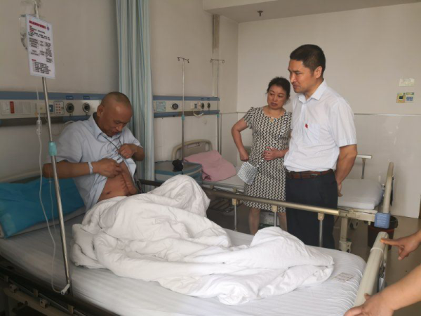 近日,益陽市分行工會主席夏劍、副主席劉志軍、桃江縣工會主席周馥一行來到桃江縣人民醫(yī)院慰問桃江縣支行重病職工許衛(wèi)民。在病房中,夏主席親切的與許衛(wèi)民同志交談,詢問他的病情、治療情況及目前的家庭生活情況,并鼓勵他一定要積極樂觀,積極配合治療,爭取早日康復(fù)。隨后,向其送上了慰問品及3萬元慰問金。