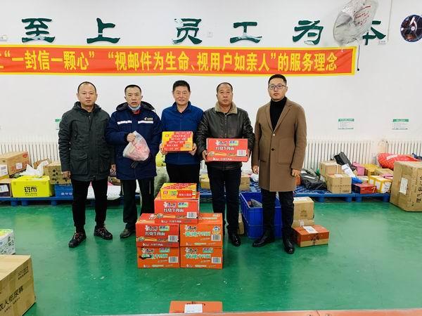 11月14日,磐石市分公司工會(huì)主席岳剛、副總經(jīng)理張連冠深入到寄遞事業(yè)部生產(chǎn)場(chǎng)地,為廣大員工送去了方便面、火腿腸、榨菜等慰問(wèn)品,也把企業(yè)的關(guān)懷與溫暖送到了一線員工身邊。岳剛主席同時(shí)代表公司感謝全體攬投人員的辛苦付出,勉勵(lì)大家既要照顧好身體又要兼顧好工作,攻堅(jiān)克難,全力奮戰(zhàn),確保將郵件高效、安全、精準(zhǔn)地送達(dá)客戶手中,全面打贏“雙11”寄遞攻堅(jiān)戰(zhàn)。