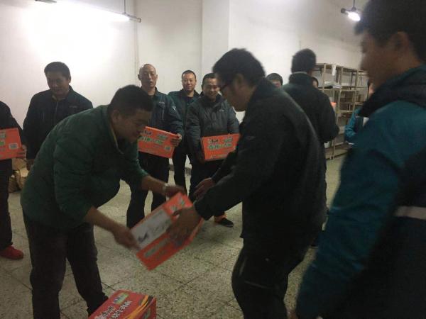 為鼓舞士氣、振奮精神,關(guān)愛職工旺季生產(chǎn)生活,北京郵政大興區(qū)分公司工會“雙十一”對全體一線投遞員進(jìn)行了慰問,并為600余名投遞員送去了方便面、餃子、鹵蛋、榨菜、蘋果慰問品,投入資金近5萬元,對雙十一旺季服務(wù)中的辛苦付出表示肯定,并向一線投遞員表達(dá)敬意和感謝,鼓勵(lì)大家繼續(xù)發(fā)揚(yáng)不怕苦、不怕累,能打仗、打勝仗的奉獻(xiàn)精神,切實(shí)抓好旺季期間服務(wù)質(zhì)量與安全生產(chǎn)兩項(xiàng)工作,確保實(shí)現(xiàn)“不延遲、不拖拉和保安全、保平穩(wěn)”的目標(biāo),借助“雙十一”的考驗(yàn),使企業(yè)發(fā)展再上一個(gè)新臺階?。ū本┼]政工會)