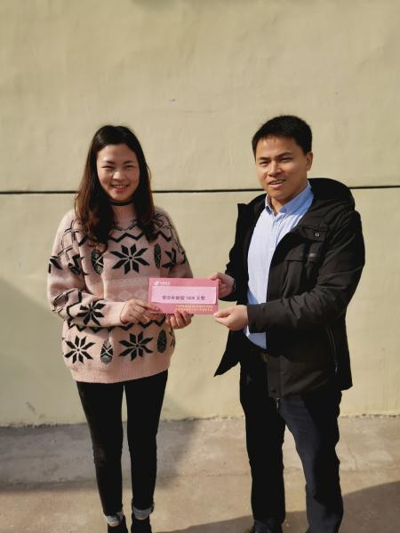 12月23日,當(dāng)新余市渝水區(qū)姚圩營業(yè)所投遞員艾風(fēng)根收到公司領(lǐng)導(dǎo)親自送來的7500元慰問金時,感動地說:“謝謝!謝謝!我一定會更加努力地工作,來報答郵政工會對我的關(guān)心和關(guān)愛”!