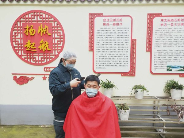 “周師傅,今天二月二,龍?zhí)ь^,我來給你們理個發(fā)吧,疫情時期,我們不僅要把郵件投遞出去,也要把郵政人正能量和抗疫精氣神傳遞出去。”廣水市長嶺支局投遞員郭國勤掏出理發(fā)工具對胡子拉碴,頭發(fā)可揪小辮的周師傅說。小郭三下五除二,干脆利索的幫師傅們剪好了頭發(fā),惹得投遞師傅們連連稱贊手法熟練、專業(yè)。在廣水疫情最嚴重的鄉(xiāng)鎮(zhèn),作為支局唯一的女投遞員,她和男同事一道一直堅守在投遞崗位上,在最后一公里第一時間把郵件送給客戶。她看到投遞師傅很長時間沒地方理發(fā)了,覺得不利于郵政人在疫情期間展示良好健康的形象,于是一連幾天,她拿家里人做試驗品,學習理發(fā),直到家人滿意時,她才自信滿滿的在同事頭上“小試剪刀”。