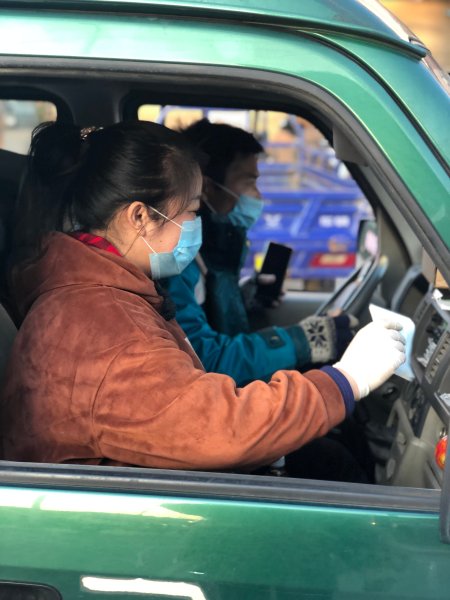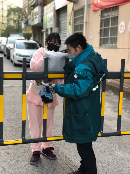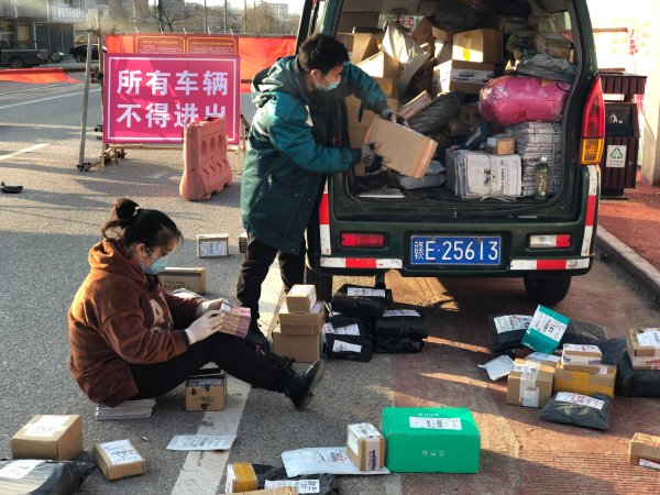 經(jīng)過幾天的了解,徐武貴的妻子已經(jīng)熟練掌握派送工作流程和內(nèi)容。由于實行交通管制,到達派送點后兩人默契分工,妻子通知客戶取件,他把包裹遞給防護欄另一邊的客戶,叮囑客戶簽字。相互陪伴,共同戰(zhàn)斗,夕陽下,一對夫妻恩愛且忙碌的身影穿梭于大街小巷。