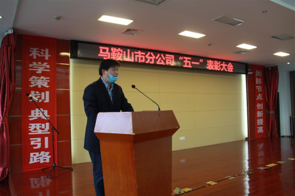 2020年4月29日下午,陽(yáng)光明媚,馬鞍山市郵政分公司在“五一”國(guó)際勞動(dòng)節(jié)前夕,召開(kāi)“五一”表彰大會(huì)。表彰市公司各條戰(zhàn)線涌現(xiàn)出來(lái)的先進(jìn)集體和先進(jìn)個(gè)人,特別是在新冠肺炎疫情期間,廣大員工齊心協(xié)力、眾志成城,始終堅(jiān)守在工作一線。表彰大會(huì)分為三個(gè)會(huì)場(chǎng),以電視電話和互聯(lián)網(wǎng)形式實(shí)時(shí)同步進(jìn)行,會(huì)議由楊文副總經(jīng)理主持。