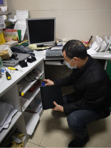 2020年2月18日下午5時,接到網(wǎng)點電話,安慶市分公司信息中心班長楊洪立刻驅(qū)車前往維修。這是他今天接到的第5個電話,忙活了一天了,飯都沒顧得上吃。 疫情爆發(fā)以來,整個城市仿佛都放慢了節(jié)奏,而信息中心反而比平時更加忙碌?!皬拇汗?jié)值班開始幾乎每天都有維護任務(wù),疫情期間維修都必須帶口罩,呆在狹小的空間長時間維修,真是悶的闖不過氣來。”零度左右的氣溫,楊洪卻忙得額頭上冒出了汗珠。 疫情還未結(jié)束,工作仍得開展。手機視頻會議需要信息中心在領(lǐng)導(dǎo)手機上或電腦上下載軟件,逐步調(diào)試,確保會議正常進行。