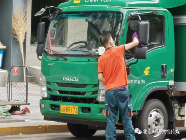據(jù)了解,照片中擦拭郵車的員工叫左占全,是北京市郵區(qū)中心局運輸中心一分車隊的駕駛員。當天,左師傅駕車出班途中遇雨,車身濺上了許多泥點子。借著在牛街營業(yè)部門前等待出口郵件裝車的間隙,他便拿起抹布認真地將車擦拭干凈,一時間郵車光可鑒人。