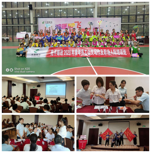 培訓(xùn)班以團(tuán)隊(duì)拓展、公文寫作及職場(chǎng)溝通能力提升培訓(xùn)和匯報(bào)演出為主要內(nèi)容。團(tuán)隊(duì)拓展環(huán)節(jié)采取抽簽組合方式,成立了8個(gè)團(tuán)隊(duì),在各自隊(duì)長(zhǎng)的帶領(lǐng)下共同想辦法、出主意、展智慧,齊心協(xié)力地投入到“足行千里”、“無敵風(fēng)火輪”、“卡牌風(fēng)云”等趣味拓展項(xiàng)目的比拼中去?,F(xiàn)場(chǎng)號(hào)子整齊響亮、氣氛緊張熱烈,展現(xiàn)出了南郵青年員工團(tuán)結(jié)拼博、勇于爭(zhēng)先的精神風(fēng)貌。通過拓展活動(dòng)強(qiáng)化了青年員工的溝通意識(shí),提高了彼此間的協(xié)作能力和團(tuán)隊(duì)意識(shí)。在公文寫作及職場(chǎng)溝通能力提升培訓(xùn)中,聘請(qǐng)資深講師為全體參訓(xùn)人員講解公文寫作的格式要求、寫作技巧、立意角度、注意事項(xiàng)等內(nèi)容,引用了很多實(shí)際工作中具有代表性的實(shí)例,通過范文對(duì)比、剖析,對(duì)公文寫作方法進(jìn)行了更加形象、生動(dòng)、直觀的講解。之后現(xiàn)場(chǎng)要求大家結(jié)合培訓(xùn)內(nèi)容,撰寫工作總結(jié)和培訓(xùn)簡(jiǎn)訊,以此檢驗(yàn)學(xué)習(xí)成果。通過寫作培訓(xùn)不僅提高了青年員工對(duì)公文寫作知識(shí)的認(rèn)識(shí),也激勵(lì)了大家在干好本職工作的同時(shí),勤思多練、積極獲取信息,在實(shí)踐中提升寫作技巧和能力。在最后的匯報(bào)演出中,青年員工們圍繞“鴻雁高飛,一路有你”活動(dòng)主題,活力四射地表演了朗誦和歌舞《致郵政、致青春》、《郵政版沙漠駱駝》、《我們都是追夢(mèng)人》等精彩節(jié)目。各隊(duì)的口號(hào)聲、助威聲、歡笑聲響徹整個(gè)現(xiàn)場(chǎng),一派青春涌動(dòng)的景象,將培訓(xùn)活動(dòng)撳起了高潮。充分展示了南平郵政青年員工朝氣蓬勃、奮發(fā)進(jìn)取、追求夢(mèng)想的奮斗青春風(fēng)采。
