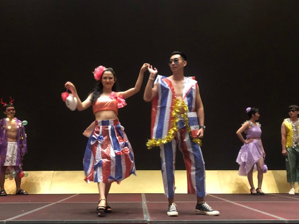 下午15:00,時(shí)裝創(chuàng)意秀正式拉開(kāi)序幕,各參展團(tuán)隊(duì)依次登臺(tái)展現(xiàn)他們別出心裁的服裝設(shè)計(jì)和精心編排的表演?!霸O(shè)計(jì)師”們大膽創(chuàng)意,員工模特自信大方展示,每一套服裝都充分展現(xiàn)出設(shè)計(jì)者獨(dú)特新穎的構(gòu)思?,F(xiàn)場(chǎng)精辟的解說(shuō)詞,更是讓大家了解到設(shè)計(jì)者的材料、創(chuàng)作特色和創(chuàng)作意圖。展出過(guò)程中還穿插了舞蹈、歌曲、環(huán)保知識(shí)小競(jìng)答等內(nèi)容,現(xiàn)場(chǎng)氣氛熱烈。