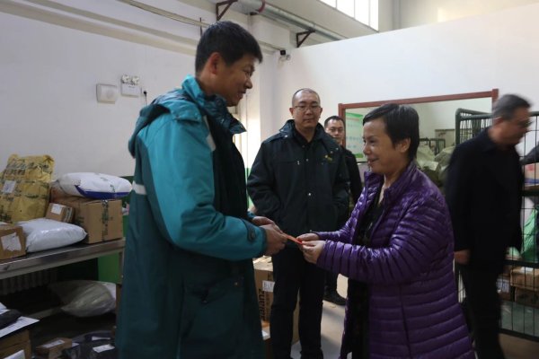 11月11日,遼寧省分公司副總經(jīng)理、工會主席蘇沙沙、副主席項連文一行,在撫順市分公司張揚總經(jīng)理、李哲勇副總經(jīng)理的陪同下,先后來到撫順縣后安郵政支局、撫順縣石文郵政支局、順城攬投部、城東攬投部和市分揀轉(zhuǎn)運中心,代表省公司和省會向旺季生產(chǎn)期間奮戰(zhàn)在一線的員工表示感謝和親切慰問,并向網(wǎng)點贈送了慰問金和慰問品。