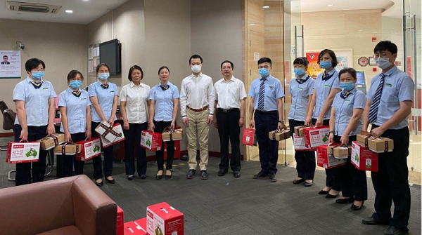 近日下午,分行黨委委員、副行長、工會主席陳磊、工會副主席陳亞軍一行來到浦東新區(qū)昌里東路支行、寶山區(qū)支行營業(yè)部、黃浦區(qū)斜土路支行,對高溫天連日奮戰(zhàn)在經營第一線的基層單位干部、員工進行慰問。