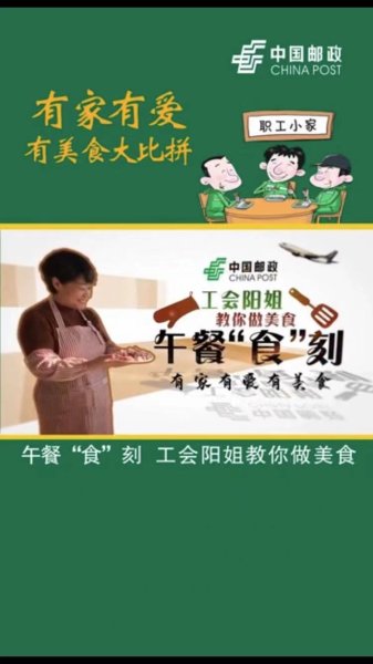 為進(jìn)一步落實(shí)市分公司“有家有愛有美食”大比拼活動(dòng),將美食文化傳播,讓小家午餐文化更為豐富,12月15日由朝陽(yáng)郵政工會(huì)出品的《午餐食刻——工會(huì)陽(yáng)姐教你做美食》系列視頻第一期正式上線,由朝陽(yáng)郵政工會(huì)同志全員參演制作。