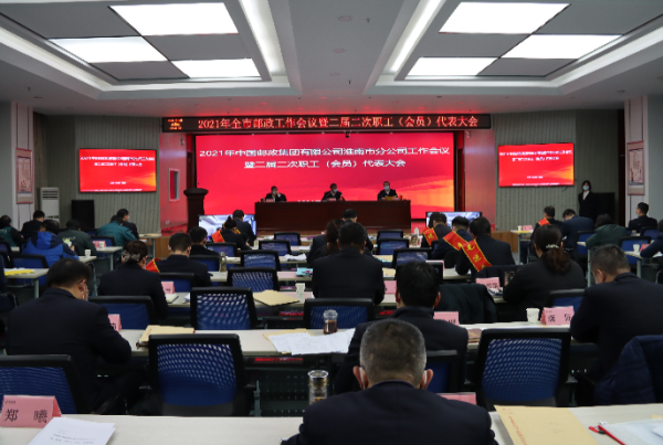 1月21日上午,淮南郵政2021工作會議暨二屆二次職工(會員)代表大會隆重召開。市分公司領(lǐng)導(dǎo)班子成員;縣分公司主要負責(zé)人;全市四級副及以上人員;職工代表參加了會議,會議設(shè)市、縣兩級會場,以現(xiàn)場+視頻的方式同步進行。