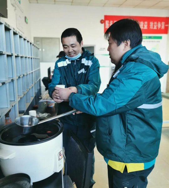 這幾天,寒潮入侵 北京迎來(lái)入冬以來(lái)最寒冷的天氣 為了讓廣大投遞員感受到溫暖 朝陽(yáng)區(qū)分公司工會(huì)準(zhǔn)備了姜茶,由各基層單位部門(mén)工會(huì)主席提前為大家熬制,讓歸班的投遞員一進(jìn)門(mén)就能喝到暖暖、甜甜的姜茶,身暖心暖,工作起來(lái)更有干勁。