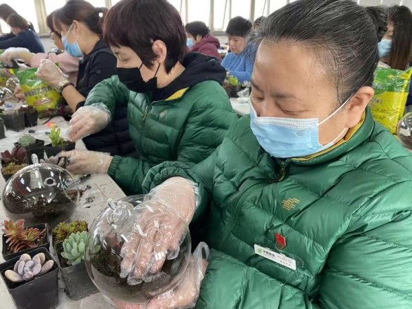 老師細(xì)心的解釋著每一株多肉的習(xí)性, 耐心的為女職工們講解每一個(gè)步驟。大家圍坐一起,在老師的講解和指導(dǎo)下,手持小工具饒有趣味地制作起來。剖土、栽種、鋪石、裝飾……每個(gè)人都樂在其中。女職工們自己動(dòng)手,打造出了自己的專屬微景觀盆栽,千姿百態(tài)、各有千秋,并且在美的感受中凈化心靈,得到了身心的放松,為接下來的工作注入了更多新鮮的力量。(北京郵政工會(huì))