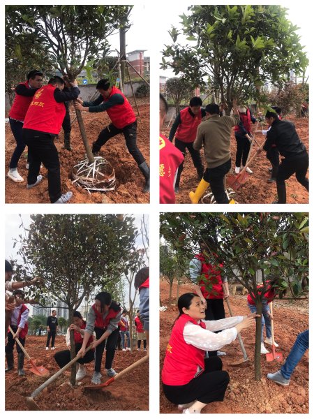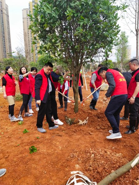 4月21日上午,在宜春市分公司黨委書記、總經(jīng)理蘇高峰的帶領(lǐng)下,分公司領(lǐng)導(dǎo)班子、各部門干部員工40余人來到分公司大院綠化區(qū)。大家穿上志愿者“紅馬甲”,扛起鏟子鋤頭,三五成群,分工合作,默契配合。植樹現(xiàn)場氣氛火熱,大家干勁十足,扶苗、對齊,培土、踩實(shí),澆水......每道工序都一絲不茍。一棵棵樹苗穩(wěn)穩(wěn)地扎進(jìn)泥土,“落戶”在新的家園。