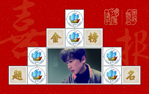 金榜提名郵票該版式以“夢想啟航”為主圖,6枚版特殊版式,成品尺寸為270x180mm。個性化郵票整體呈階梯形狀、不斷上升,象征莘莘學(xué)子金榜題名后夢想啟航、不斷攀登人生高峰。邊飾中以紅色和金色表達(dá)喜慶祝賀之意。邊飾上暗紋字為“報喜”與右上角的“金榜題名”印章,呼應(yīng)金榜題名主題,更加突出的表達(dá)對于莘莘學(xué)子最樸素美好的祝愿。 目前有8位學(xué)子現(xiàn)場收到一套金榜提名個性化郵冊禮物,感到自己的肖像躍上個性化郵票這一“方寸世界”里,并且具有極高的收藏價值和紀(jì)念意義,紛紛表達(dá)要在大學(xué)好好學(xué)習(xí),將來為社會做出貢獻(xiàn)。
