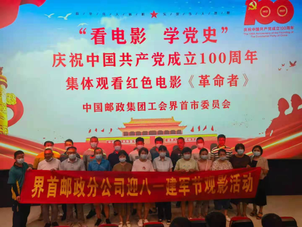 8月1日,為慶祝中國人民解放軍成立94周年,銘記光輝歷史,傳承革命先輩優(yōu)良傳統(tǒng),界首郵政工會組織退伍軍人、現(xiàn)役軍人家屬及青年員工集中觀看紅色電影《革命者》。此次觀影活動讓大家在“紅色浪潮”中重溫歷史,激勵大家不忘初心,堅定理想信念,將革命精神融入到平凡的工作中去,立足崗位勇?lián)?dāng),用實際行動為郵政增光添彩。