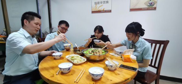 見到綜合辦公室張建平一行來到網(wǎng)點(diǎn),黃雨晴上前招呼道:“張老師,你們今天中午就在我們這里吃中午飯喲,我們正要去買菜?!?/p>