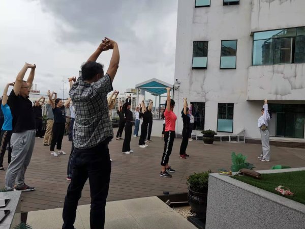 在社會快速發(fā)展,各種壓力日益加大的現(xiàn)實情況下,關(guān)心職工身心狀態(tài)不斷提高職工健康管理意識和健康水平顯得越發(fā)重要。學(xué)習(xí)簡便易行、不受環(huán)境、場地限制的一些科學(xué)健身方法,能有效幫助職工增強(qiáng)參與運動的興趣和信心,從中獲得持續(xù)運動的健康收效。在職工的熱心幫助和推薦下,機(jī)關(guān)工會組織開展了職工健身八段錦的練習(xí),練習(xí)活動安排在下午下班后,大家結(jié)束一天忙碌的工作,相約來到四樓平臺,在傍晚的微風(fēng)中,跟隨老師舒張肢體放松身心,在練習(xí)中體會著傳統(tǒng)健身方式帶給自己身體的調(diào)適,一天緊張工作的疲憊感,在肢體的拉伸中漸漸被消散。