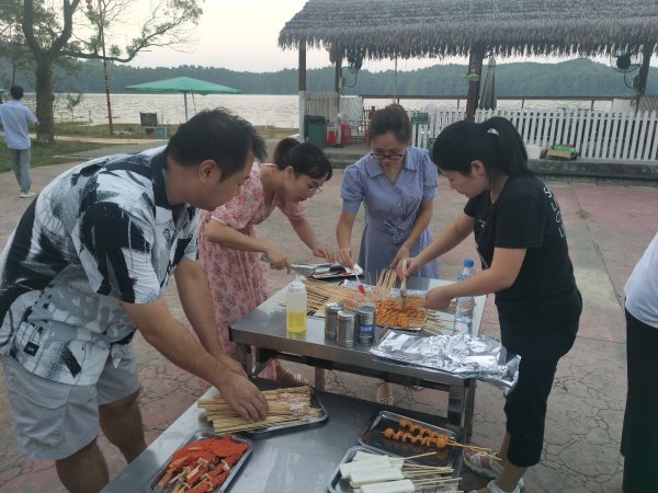 套圈活動結(jié)束后,緊接著燒烤活動開始了。10余個烤爐全部開啟,每個烤爐前都圍著一些員工,有調(diào)火的,有調(diào)味的,香味彌漫,烤肉和烤腸讓人垂涎欲滴。大家游走各個烤爐間品嘗著美味,食物烤熟后馬上就被一搶而空。為了趕上大家吃的速度,燒烤大師們一個個都卯足了勁。