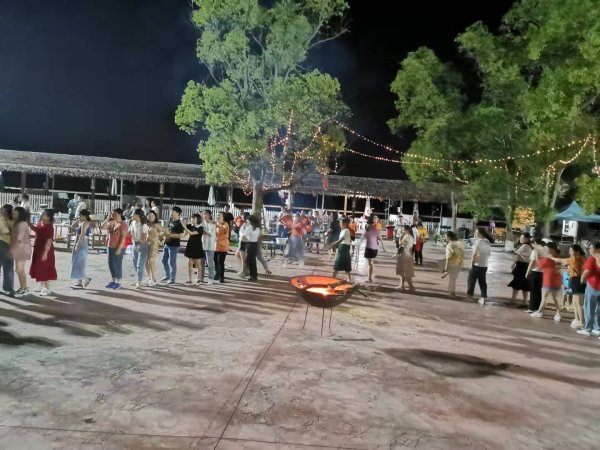 隨后,主持人召集大家上臺做搶凳子的小游戲,每輪10人參加,將9個板凳圍成一圈,10個參賽者跟著音樂按順時針方向圍繞板凳轉(zhuǎn)圈,音樂聲停,迅速搶占一個板凳坐下,沒有搶到板凳的人被淘汰,并抽掉一個凳子繼續(xù),直到剩余最后1人為勝出者。有的員工音樂還沒停就習(xí)慣性坐下來,有的員工音樂停了還在轉(zhuǎn)圈,不知道去哪神游了,引來一片歡笑聲。最后,大家借著皎潔的月光,踩著歡快的節(jié)拍,圍著篝火跳起了兔子舞,篝火晚會將現(xiàn)場氣氛推向了新的高潮。