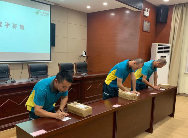 9月22日18:30,嘉魚縣郵政分公司舉辦了“城區(qū)攬投站技能大賽”,此次大賽活動共有25人參賽,均為城區(qū)攬投站投遞員。縣分公司總經(jīng)理王泉,分管領(lǐng)導(dǎo)殷強(qiáng)出席比賽現(xiàn)場,為選手們加油鼓勁。比賽項(xiàng)目由攬投項(xiàng)目和普郵項(xiàng)目兩部分組成,攬投項(xiàng)目以基礎(chǔ)知識搶答、徒手稱重、郵件封裝、郵費(fèi)計算為主,主要考核攬投員收寄規(guī)范、快件綠色包裝規(guī)范等操作能力;普郵項(xiàng)目以報刊分發(fā)為主,考驗(yàn)攬投員數(shù)報的速度和準(zhǔn)確性。比賽過程中,選手們斗志昂揚(yáng),爭先恐后的舉手搶答,只見攬投員李翔手拿包裹掂量了一下然后迅速拿筆在紙上記下了重量,“徒手稱重、郵費(fèi)計算我比較在行,郵件封裝則需要在細(xì)節(jié)上再加強(qiáng),不能馬虎大意”。現(xiàn)場氛圍緊張熱烈,經(jīng)過激烈的角逐,共評選出郵費(fèi)計算獎3名、郵件封裝獎3名、徒手稱重獎3名、報刊分發(fā)獎3名。