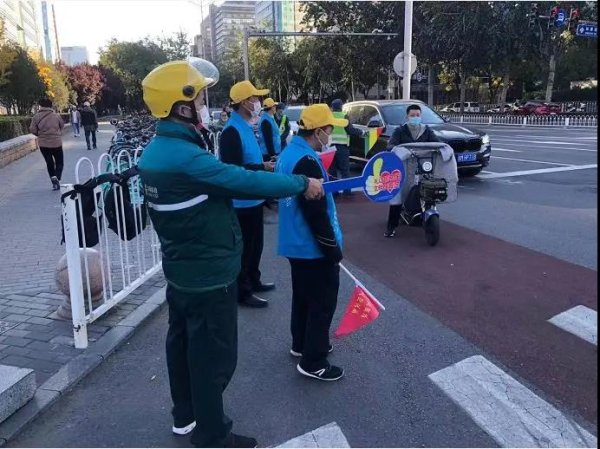 10月27日清晨早高峰,來自海淀區(qū)中關村郵政支局的4名郵政投遞員走進位于海淀黃莊路的某交通路口,以“禮讓斑馬線,文明在海淀”宣傳高潮日活動志愿者身份,手持文明點贊牌協(xié)助交警維護交通安全,并為禮讓斑馬線的司機點贊。